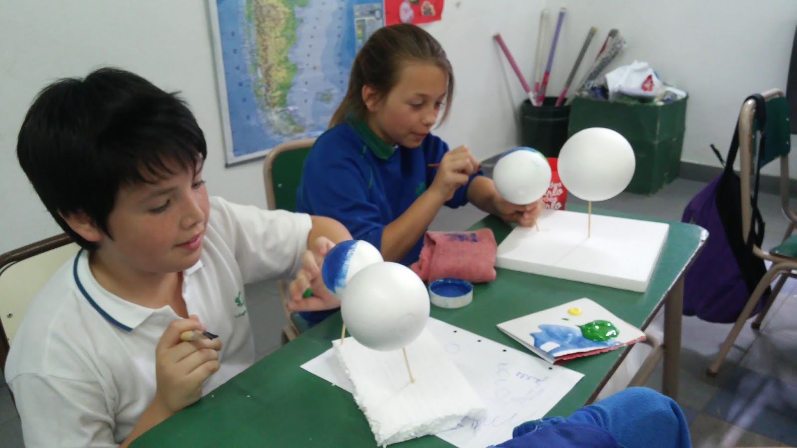 Con los chicos de 5° A y 5°B de primaria, trabajamos en ciencias naturales, los movimientos de la tierra y el sistema solar, para la muestra.